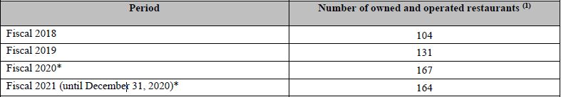 No. of owned and operated restaurants since FY 18