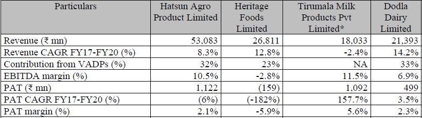 Financial Comparison of dairy companies in south india