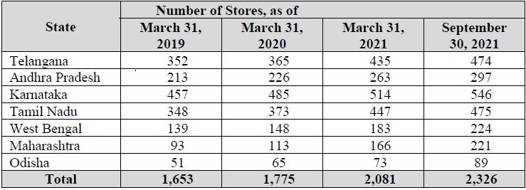 Company’s store count in various states