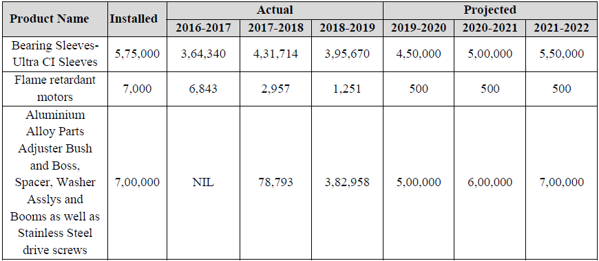 Companys Installed and projected Capacity