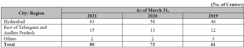 Number of company’s centres