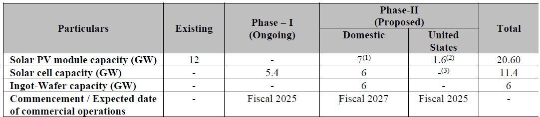 Company’s Ongoing and Proposed Capacity expansion